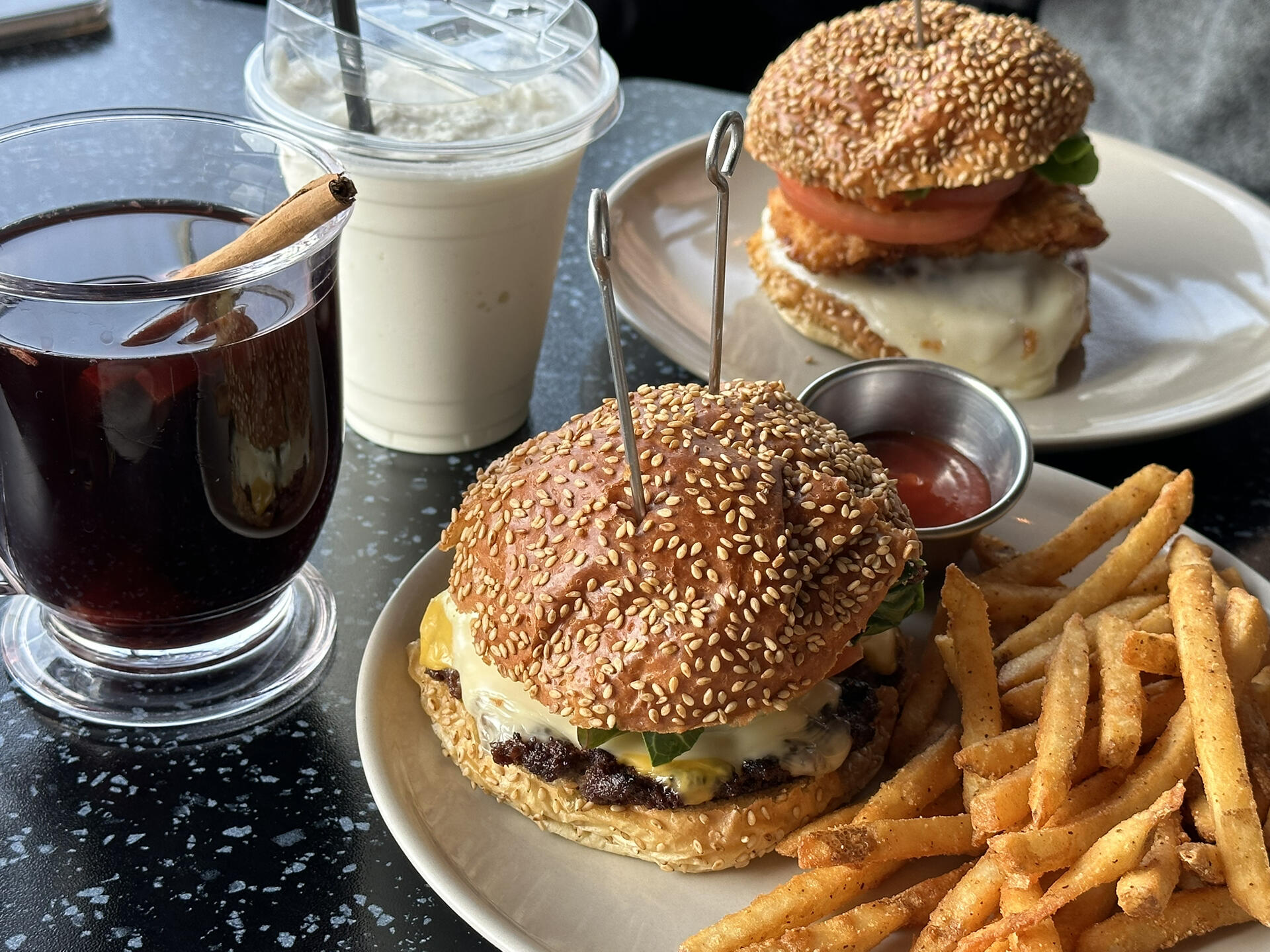 從南山公園腳下的小路走到一個入口,順著樓梯下去,周圍像是一個小區(qū),充滿了咖啡店的氛圍。吃完漢堡后,可以繼續(xù)享受咖啡和甜品的時光~漢堡味道不錯,適合大胃王,薯條非常脆,搭配可樂簡直完美,不會覺得膩??。人均消費大約在2萬韓幣??。今天運氣超好,直接坐到了NCT成員曾經(jīng)坐過的127號位置,超開心!