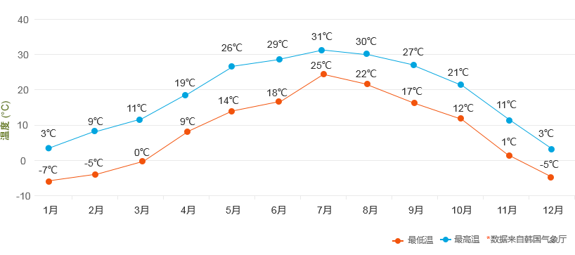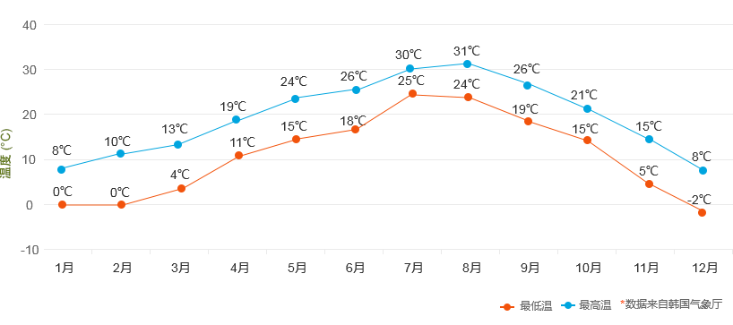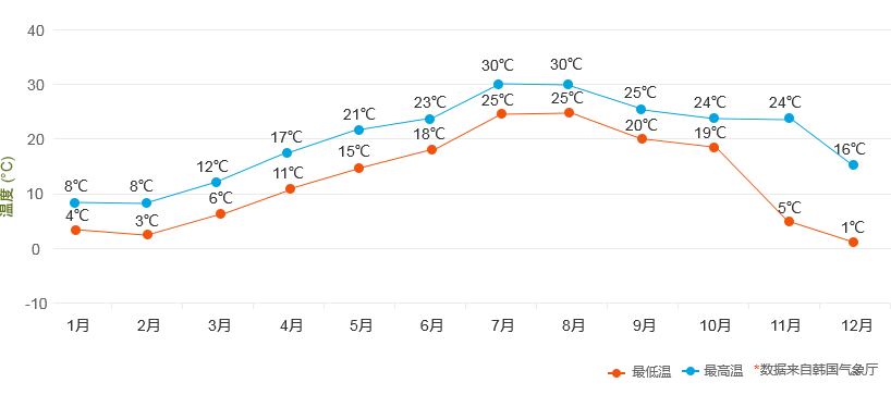 夏季的炎熱在8月會到達(dá)頂峰,8月平均溫度會在23度~26度左右,很多韓國人會選擇食用參雞湯來驅(qū)趕體內(nèi)的濕氣。